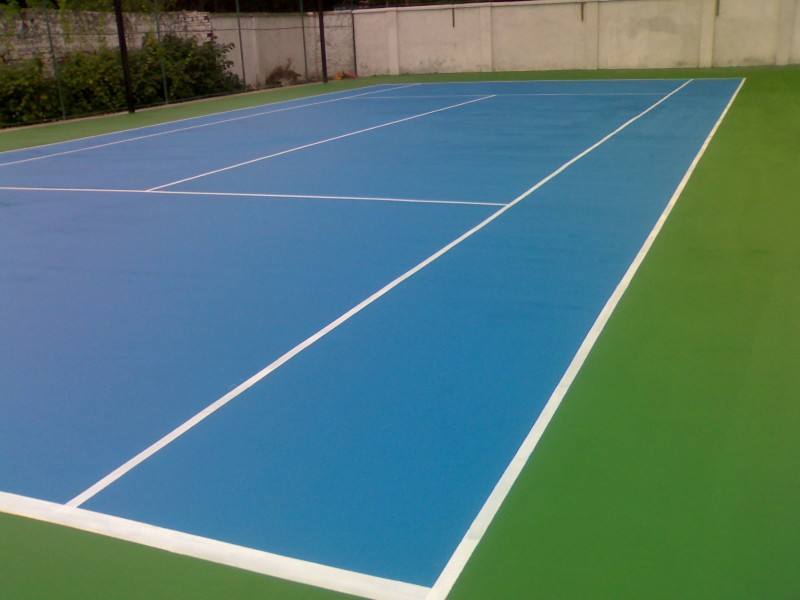按專用砂比例充分混合攪拌均勻硅PU球場材料,鋪設于加強面上,一般鋪設兩道或三道;也可做成光滑面。五、劃線